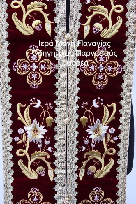 Πετραχήλι Χρυσοκέντητο με ασήμι και χρυσό σε γκρενά Βελούδο