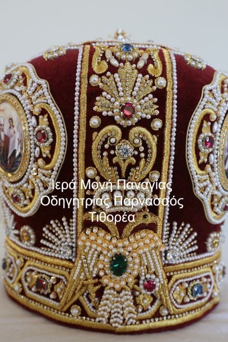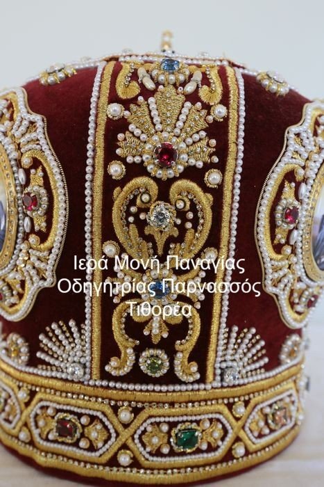 Μίτρα βελούδινη κόκκινη με πέρλες